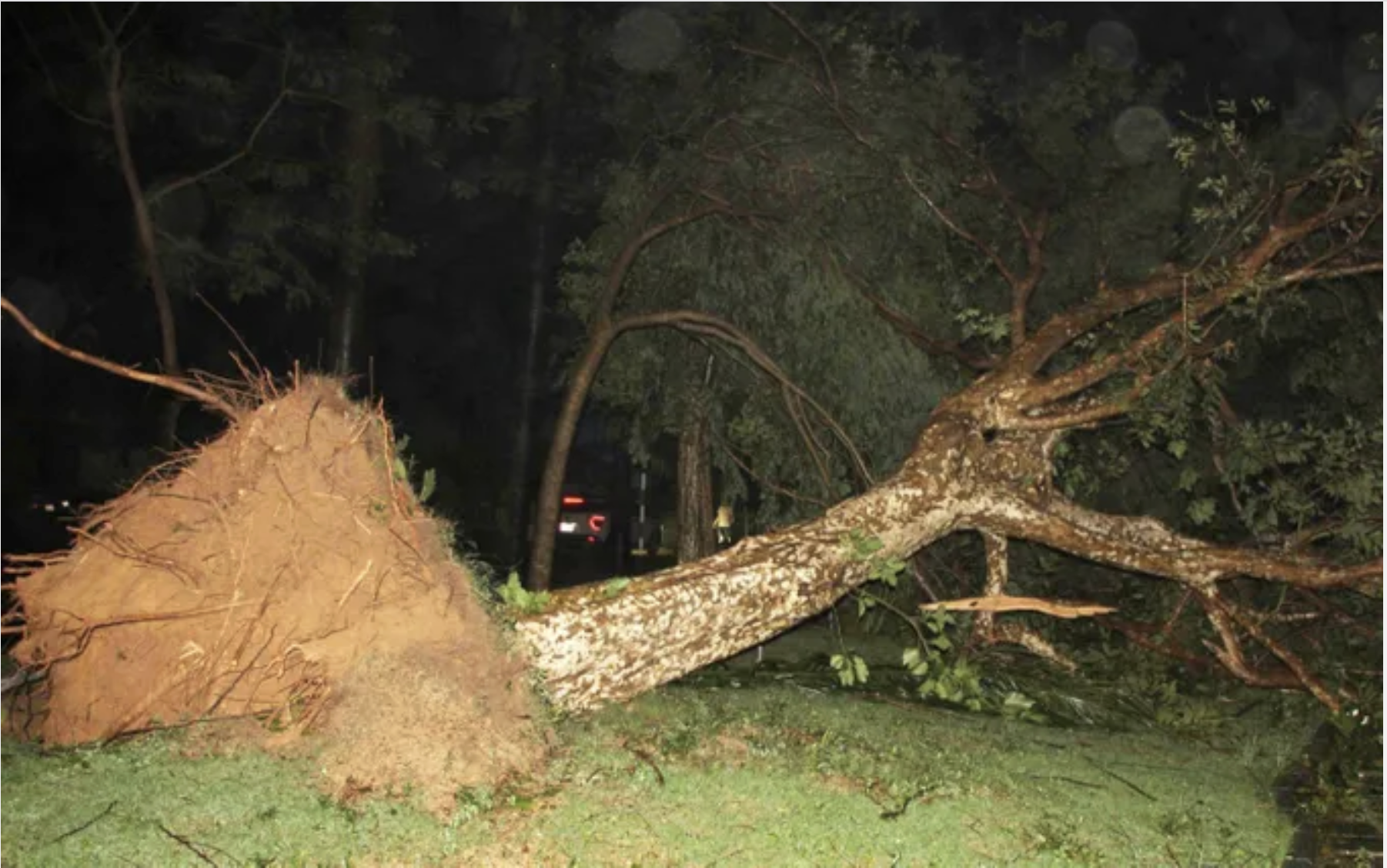 Cây cối đổ ngổn ngang tại phường Tuy Hoà (Đak Lăk) (Ảnh: Truyền hình Đăk Lăk)