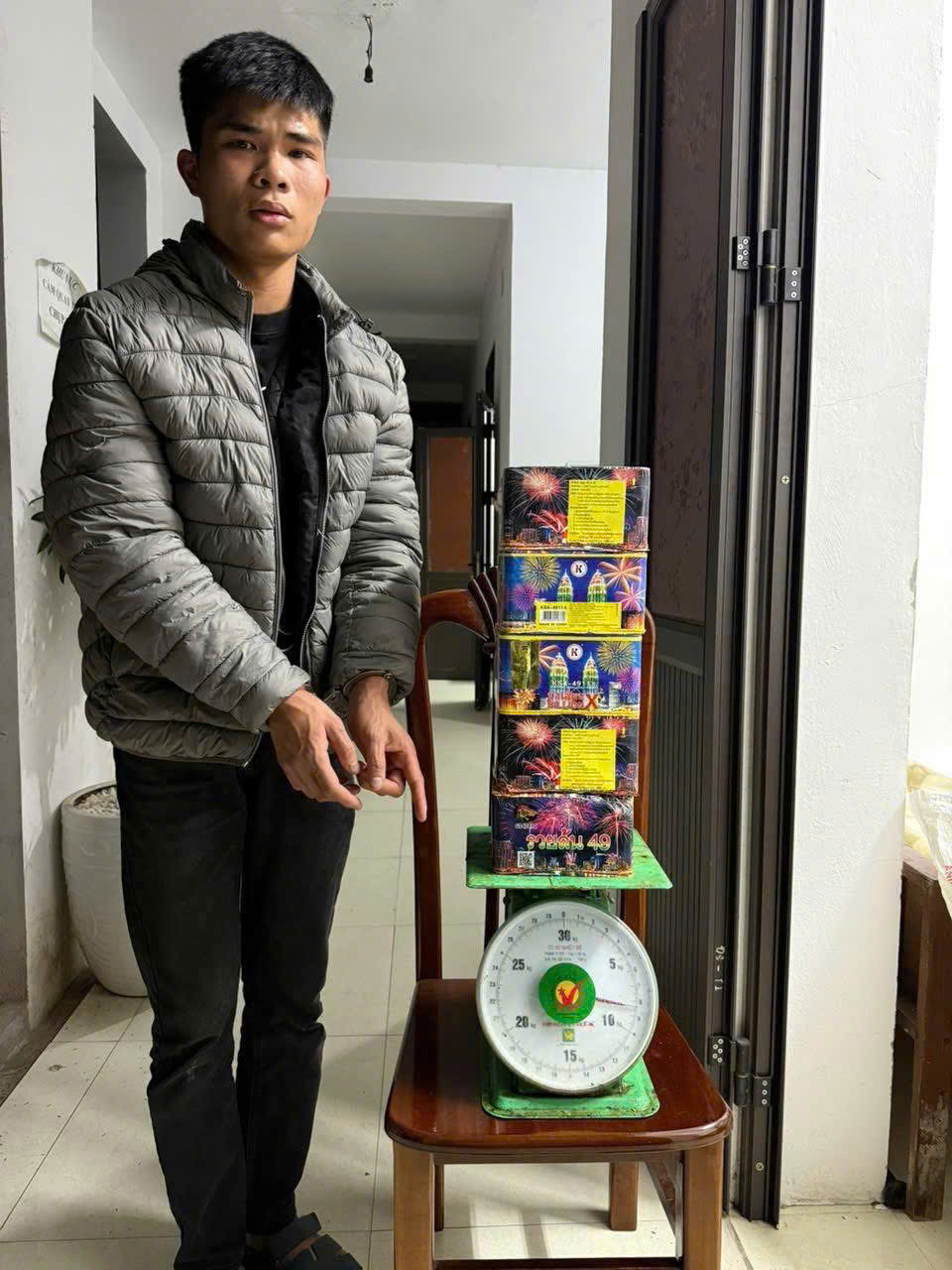 Hồi 23 giờ 45 phút ngày 23/12/2025, trong quá trình tuần tra, kiểm soát bảo đảm an ninh trật tự tại khu vực ngõ 7, đường Nguyễn Tất Thành, thuộc Tổ dân phố Vinh Thịnh Đông, phường Vĩnh Phúc, Tổ công tác của Công an phường Vĩnh Phúc đã phát hiện, bắt quả tang đối tượng Nguyễn Văn Duy, SN: 2004, HKTT: thôn Đồng Lý, xã Xuân Lãng, tỉnh Phú Thọ có hành vi tàng trữ 05 cối pháo, loại pháo hoa nổ dàn 49 quả do nước ngoài sản xuất, có khối lượng 8,5kg.