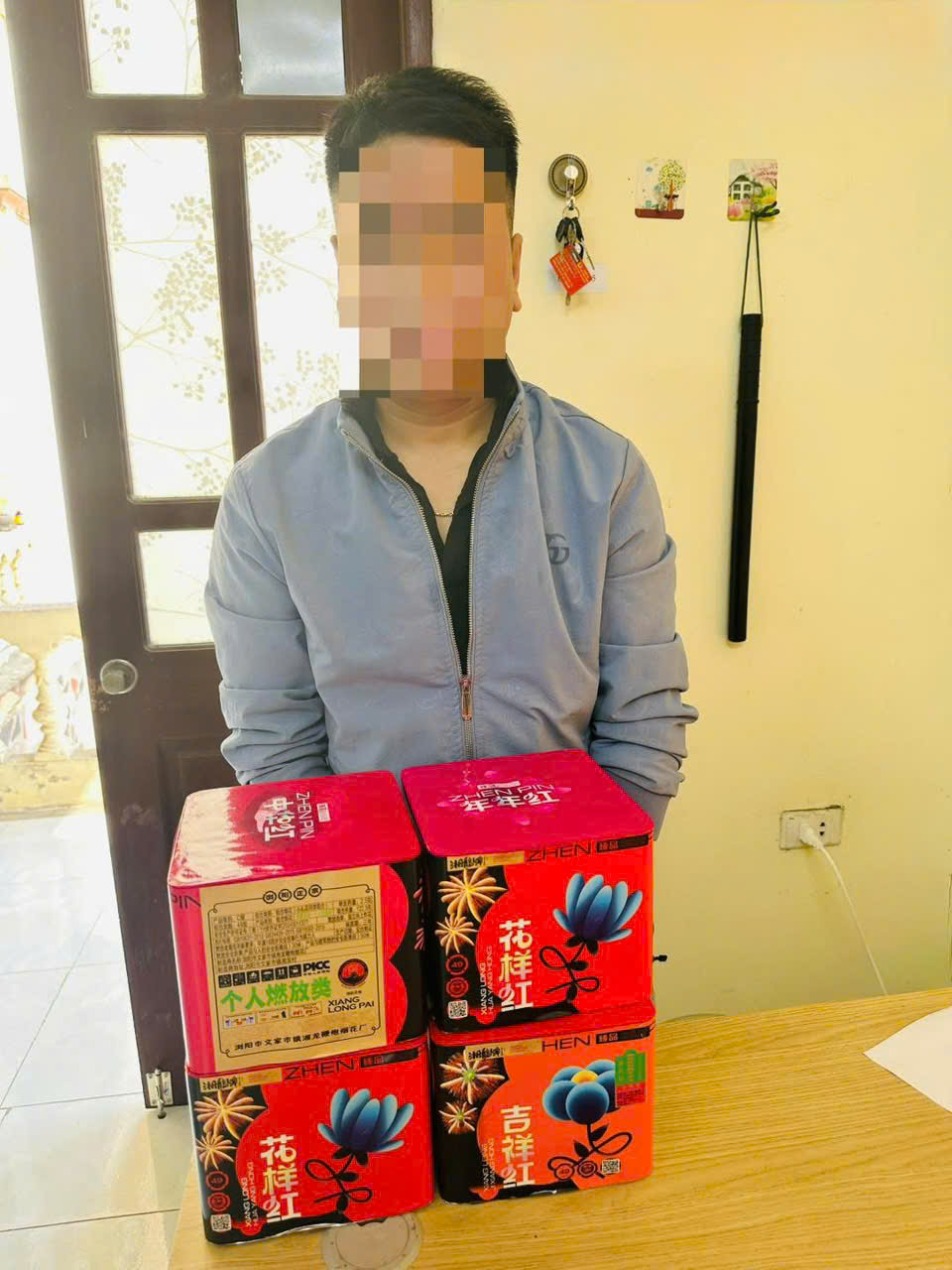 Qua kiểm tra, đã phát hiện đối tượng tự khai tên V.X.T, sinh năm 1987, trú tại thôn Mạch Lũng, xã Thiên Lộc, thành phố Hà Nội có hành vi tàng trữ hàng cấm (pháo nổ). Tang vật thu giữ 04 khối hộp trọng lượng 7,530 kg pháo nổ.