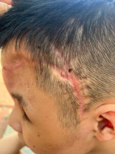 – Thời gian điều trị tích cực tại Bệnh viện từ ngày 02/02/2025 đến ngày 05/08/2025 là hơn 6 tháng, quá trình điều trị được thực hiện điều trị tại 3 bệnh viện cụ thể là: Bệnh viện Đa Khoa Tỉnh Vĩnh Phúc thực hiện mổ cấp cứu, Bệnh Viện Hữu Nghị Việt Đức phẫu thuật xử lý rò dịch não tủy và áp xe nhiễm trùng, Bệnh Viện Nhiệt Đới Trung Ương thực hiện điều trị nhiễm trùng não, toàn bộ quá trình điều trị kéo dài liên tục hơn 6 tháng, tổng chi phí điều trị của cháu đã lên tới gần 500 tr đồng, hiện tại cháu đã được về nhà theo dõi hồi phục. Phụ huynh cháu NGUYỄN DUY THÀNH (người ném đá vào đầu con tôi) có tới thăm hỏi và hỗ trợ gia đình 3 lần với tổng số tiền là 60.000.000 đ, tuy nhiên sau khi hỗ trợ 60.000.000 đ phụ huynh cháu NGUYỄN DUY THÀNH đã chặn số điện thoại, cắt đứt liên lạc với gia đình tôi.